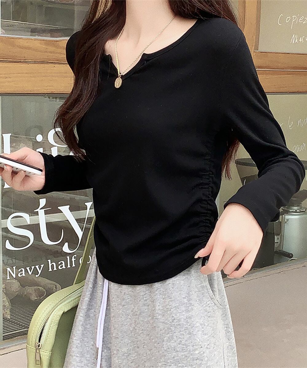 サイドドローストリングTシャツキーネック