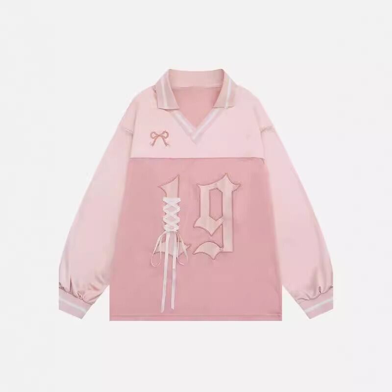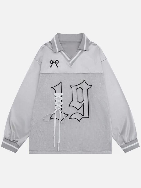 トップス ポロシャツ カットソー Vネック パンクファッション 長袖 刺繍 レディース