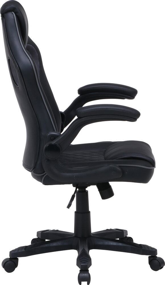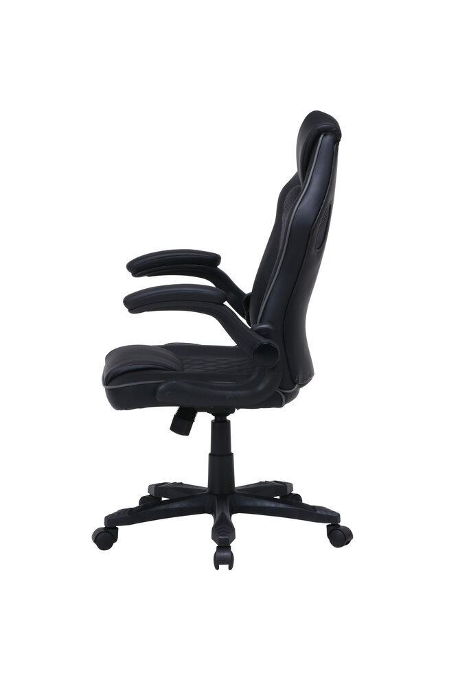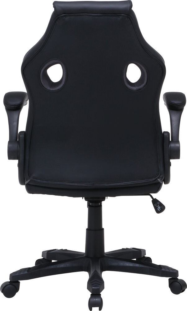 一息つきたい時に、ゆったり寄りかかれるロッキング機能付き。デスクの下にすっきり収めることができる、アームアップチェア。〈br〉幅490×奥行470mmの座面で男性の方でもあぐらがかけます。程よい硬さのクッションが体を支え、長時間の作業にも快適です。アームレストにもたっぷりのクッションを使用。〈br〉肘の負担を軽減します。シートハイ42~50cmの昇降機能付き。〈br〉レバーの簡単な操作で高さを調整できます。座面・背面の一部には、通気性の良いパンチングPUレザーを使用しています。シート高さ420~500mm