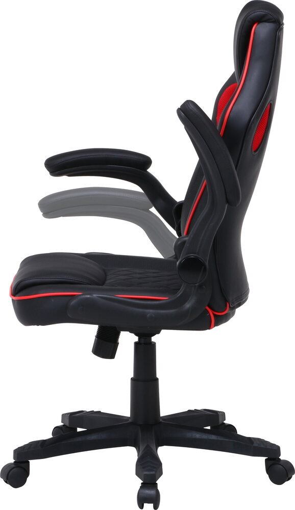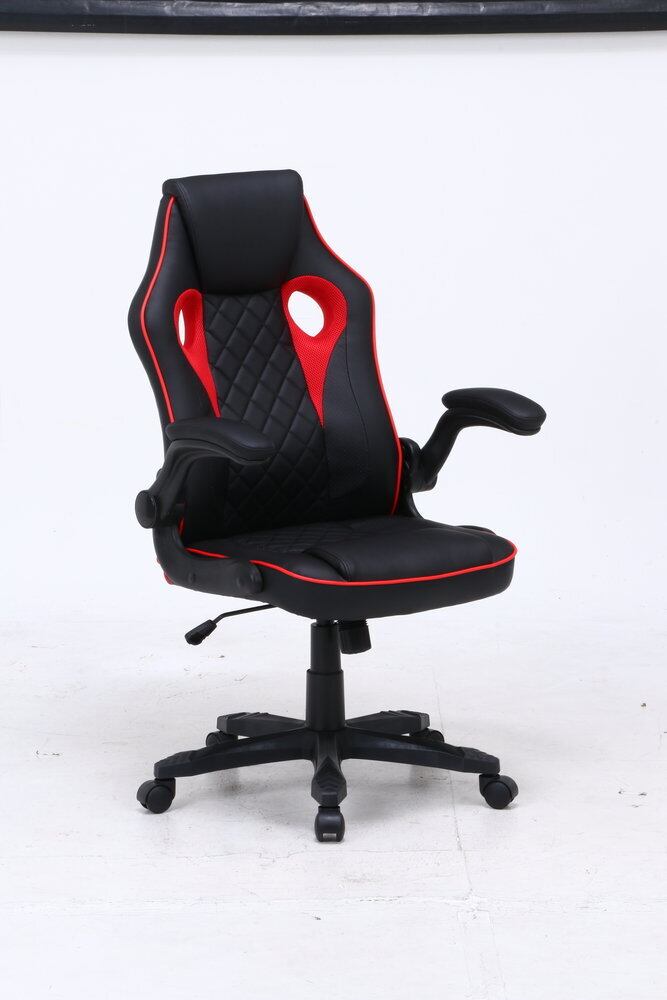 一息つきたい時に、ゆったり寄りかかれるロッキング機能付き。デスクの下にすっきり収めることができる、アームアップチェア。〈br〉幅490×奥行470mmの座面で男性の方でもあぐらがかけます。程よい硬さのクッションが体を支え、長時間の作業にも快適です。アームレストにもたっぷりのクッションを使用。〈br〉肘の負担を軽減します。シートハイ42~50cmの昇降機能付き。〈br〉レバーの簡単な操作で高さを調整できます。座面・背面の一部には、通気性の良いパンチングPUレザーを使用しています。シート高さ420~500mm