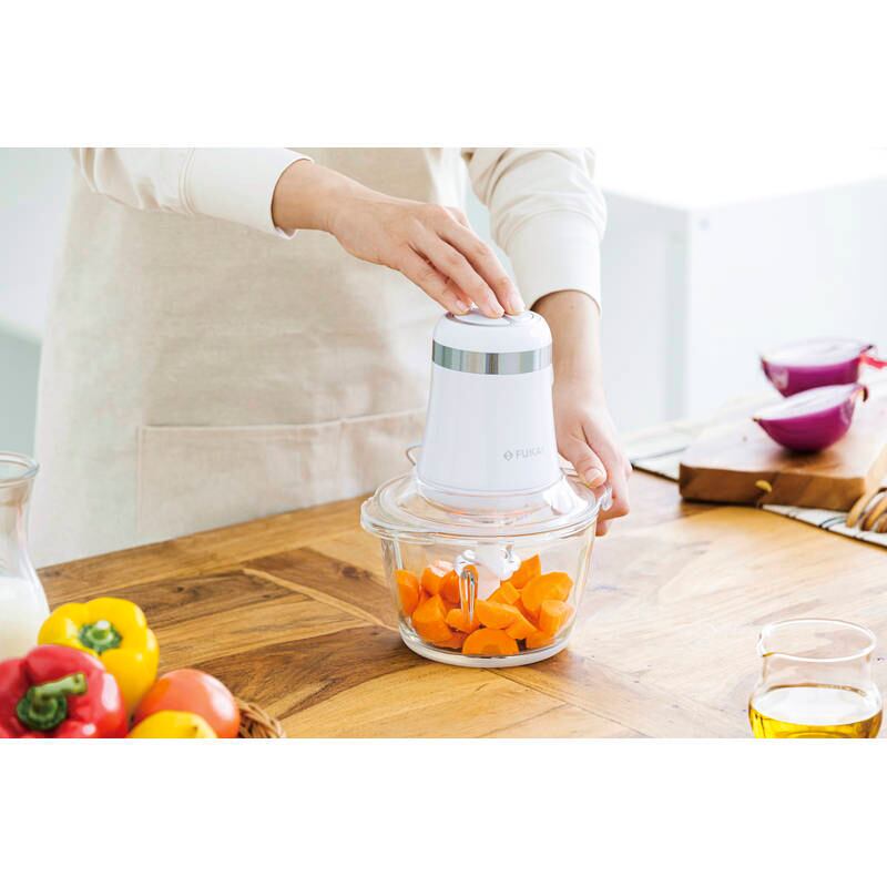 料理の下ごしらえに便利で調理時間短縮にも。「みじん切り」「きざむ」「まぜる」がワンプッシュで簡単にできる。・選べる速度スイッチ/高速・低速・ダブルブレード採用で、スピーディに調理が可能。・ガラスが滑らないすべり止めリング付き。・衛生的な大容量ガラスボトルを採用。・フタがしまっていないと作動しない安全設計。・本体以外は分解して水洗い可能なので衛生的。